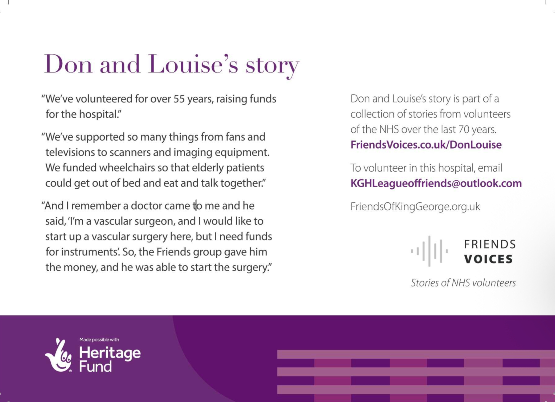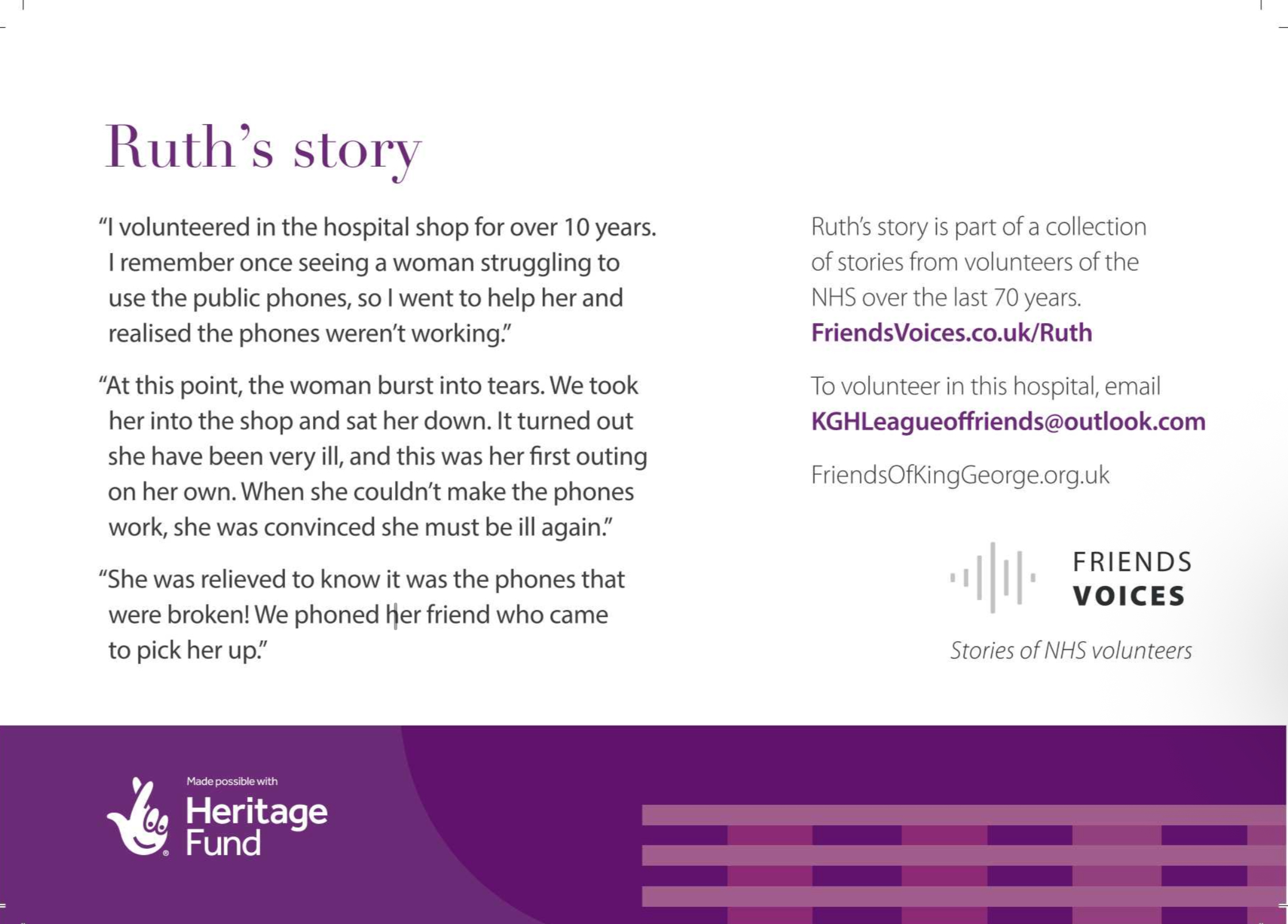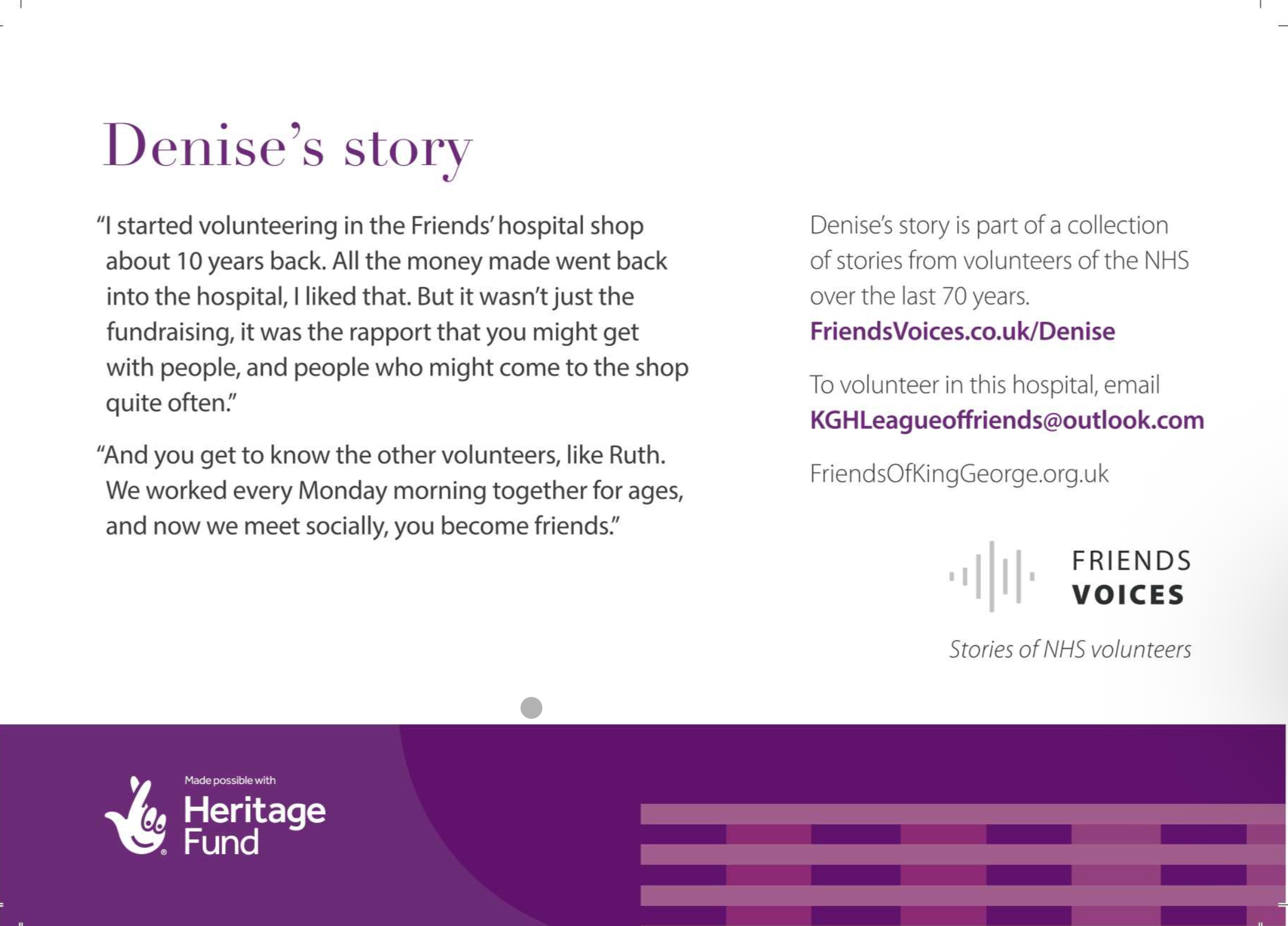 Five of the long-standing volunteers have recorded their stories of volunteering as part of the “Friends Voices’’ project, and Friday was the opportunity to show those stories with the wider hospital